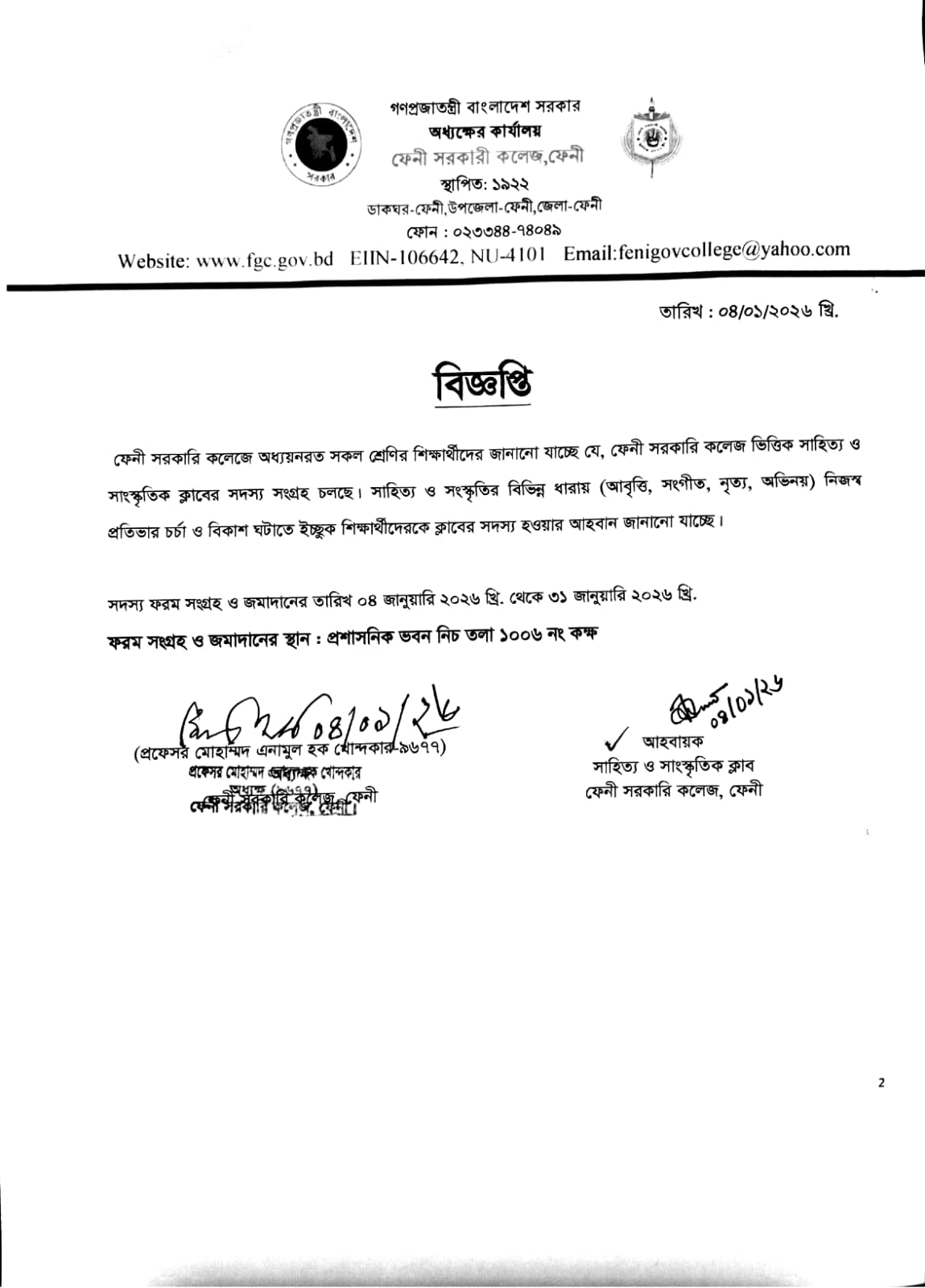 বার্ষিক সাহিত্য ও সাংস্কৃতিক প্রতিযোগিতা-২০২৫ এর সাংস্কৃতিক অনুষ্ঠান ও পুরস্কার বিতরণ সংক্রান্ত বিজ্ঞপ্তি |