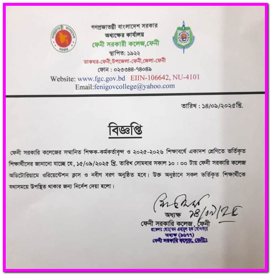 ২০২৩-২০২৪ শিক্ষাবর্ষে একাদশ শ্রেণিতে ভর্তিকৃত শিক্ষার্থীদের ওরিয়েন্টেশন অনুষ্ঠান সংক্রান্ত বিজ্ঞপ্তি |