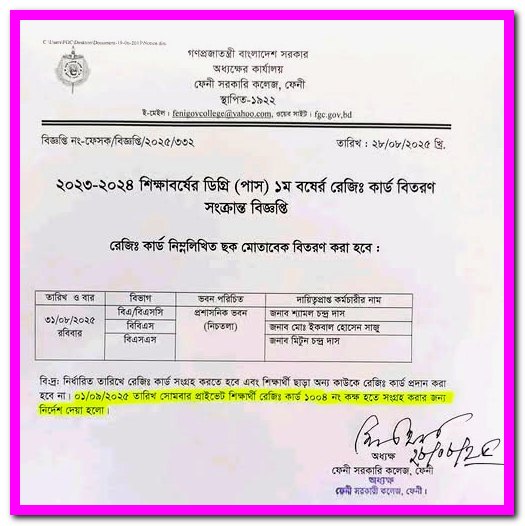 ২০২৫-২০২৬ শিক্ষাবর্ষের একাদশ শ্রেণির রেজিস্ট্রেশন কার্ড বিতরণ সংক্রান্ত বিজ্ঞপ্তি |