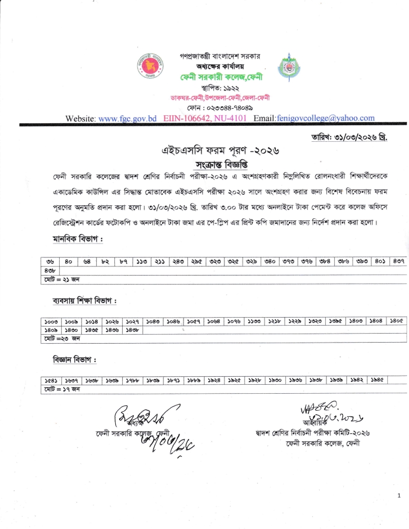 এইচএসসি পরীক্ষা-২০২৬ এ বিশেষ বিবেচনায় ফরম পূরণের জন্য যোগ্য শিক্ষার্থীদের তালিকা |