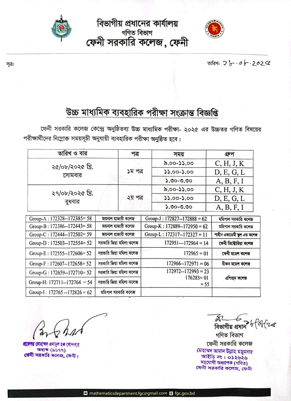 ২০২৩ সালের উচ্চমাধ্যমিক গণিত ব্যবহারিক পরীক্ষার সময়সূচি |
