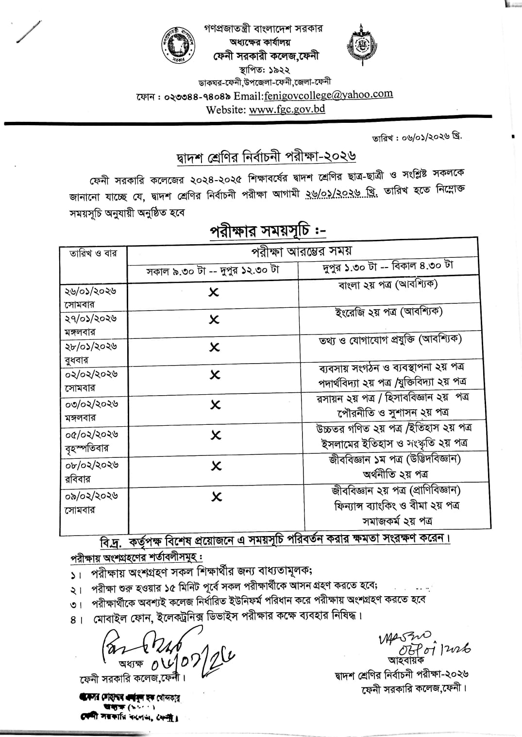 দ্বাদশ শ্রেণির নির্বাচনী পরীক্ষা-২০২৬ এ অংশগ্রহণকারী শিক্ষার্থীদের প্রতি নির্দেশনা |